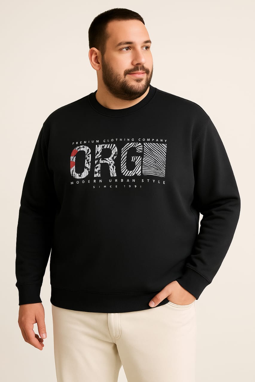 High-quality big size men’s sweatshirt made from premium Turkish fleece cotton with modern branded front design. Warm, comfortable, and perfect for everyday wear.