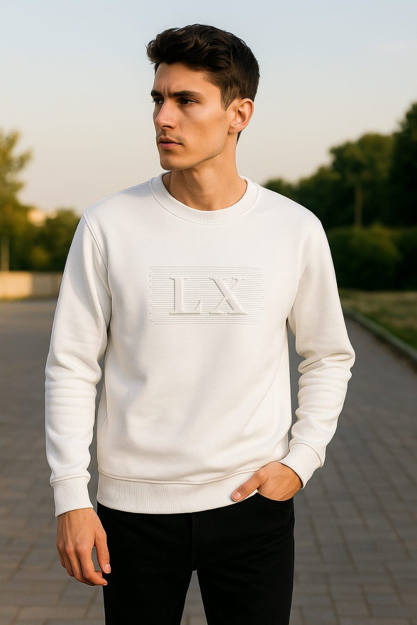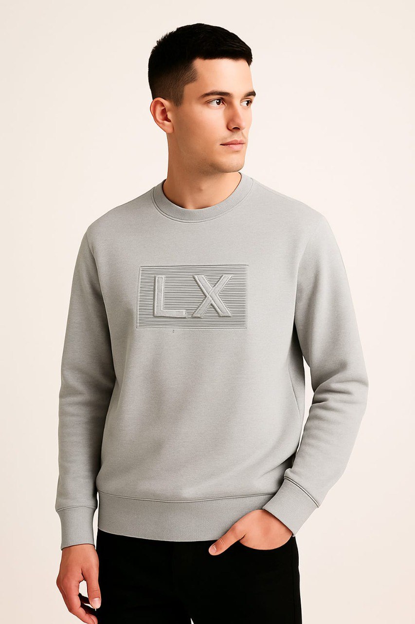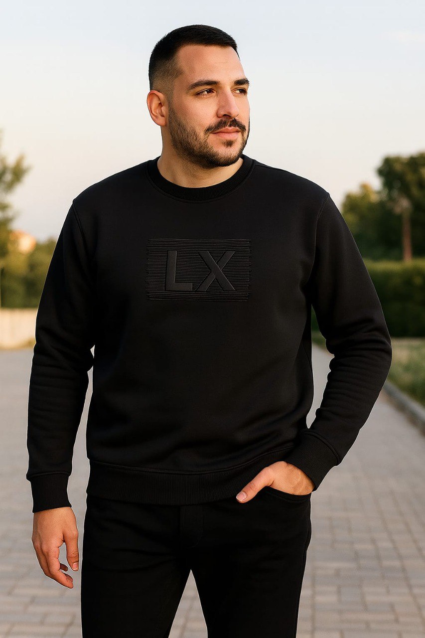 High-quality Turkish French terry cotton men’s sweatshirt with embossed LX logo. Soft, durable, and available from size S to XXL.