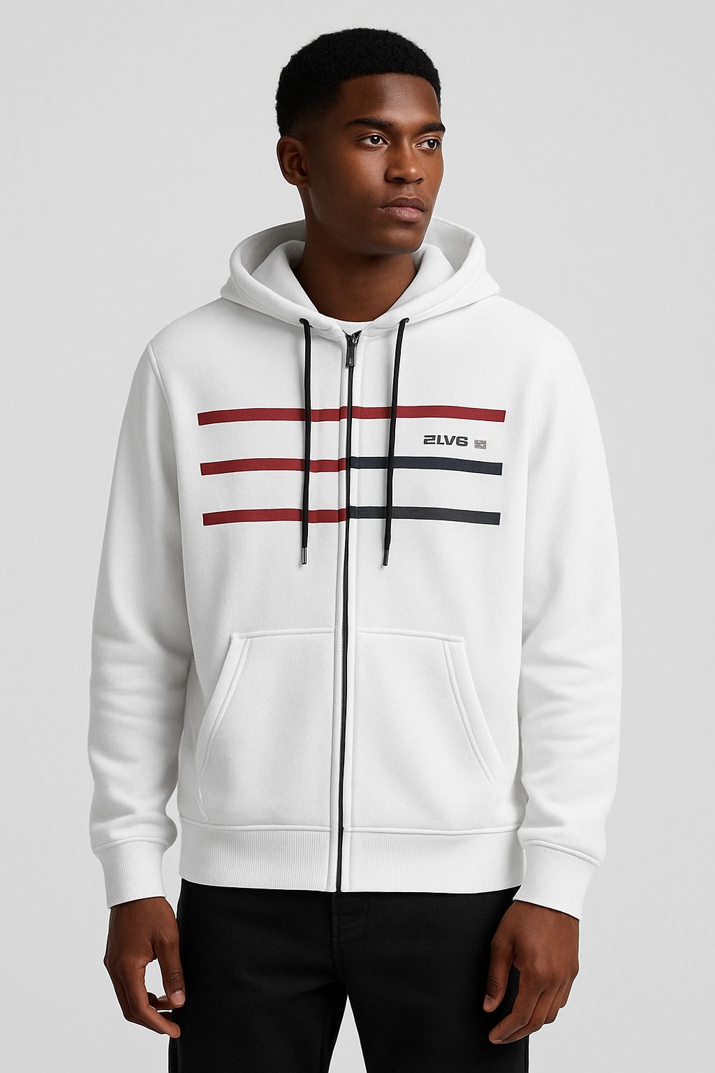 Premium red heavy French Terry zip-up hoodie with striped details. Warm, durable, and perfect for winter and casual wear.