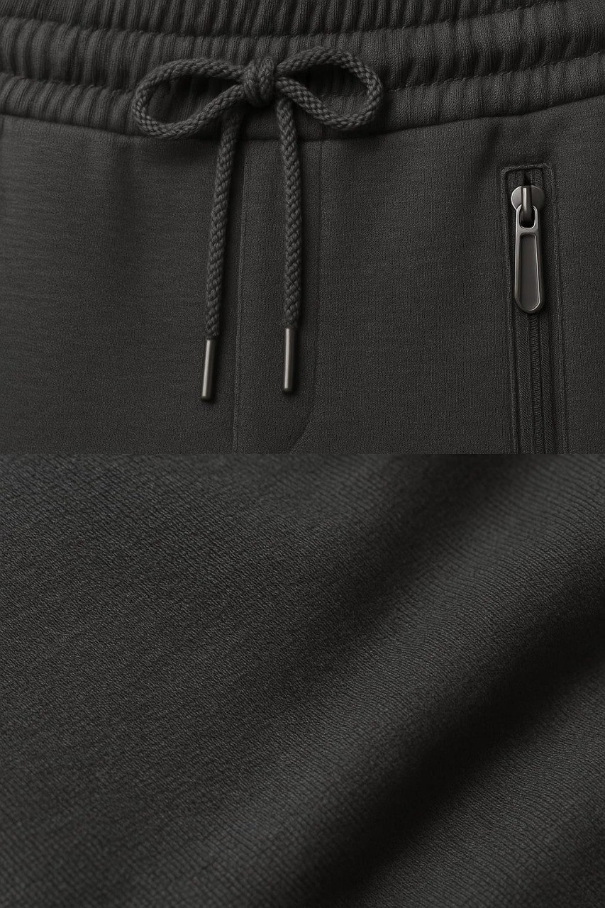 The slim-fit silhouette gives a clean, modern look while maintaining full comfort and flexibility. Featuring an elastic waistband with adjustable drawstring, secure zippered side pockets, and a sleek back welt pocket, these pants are designed for both practicality and style.