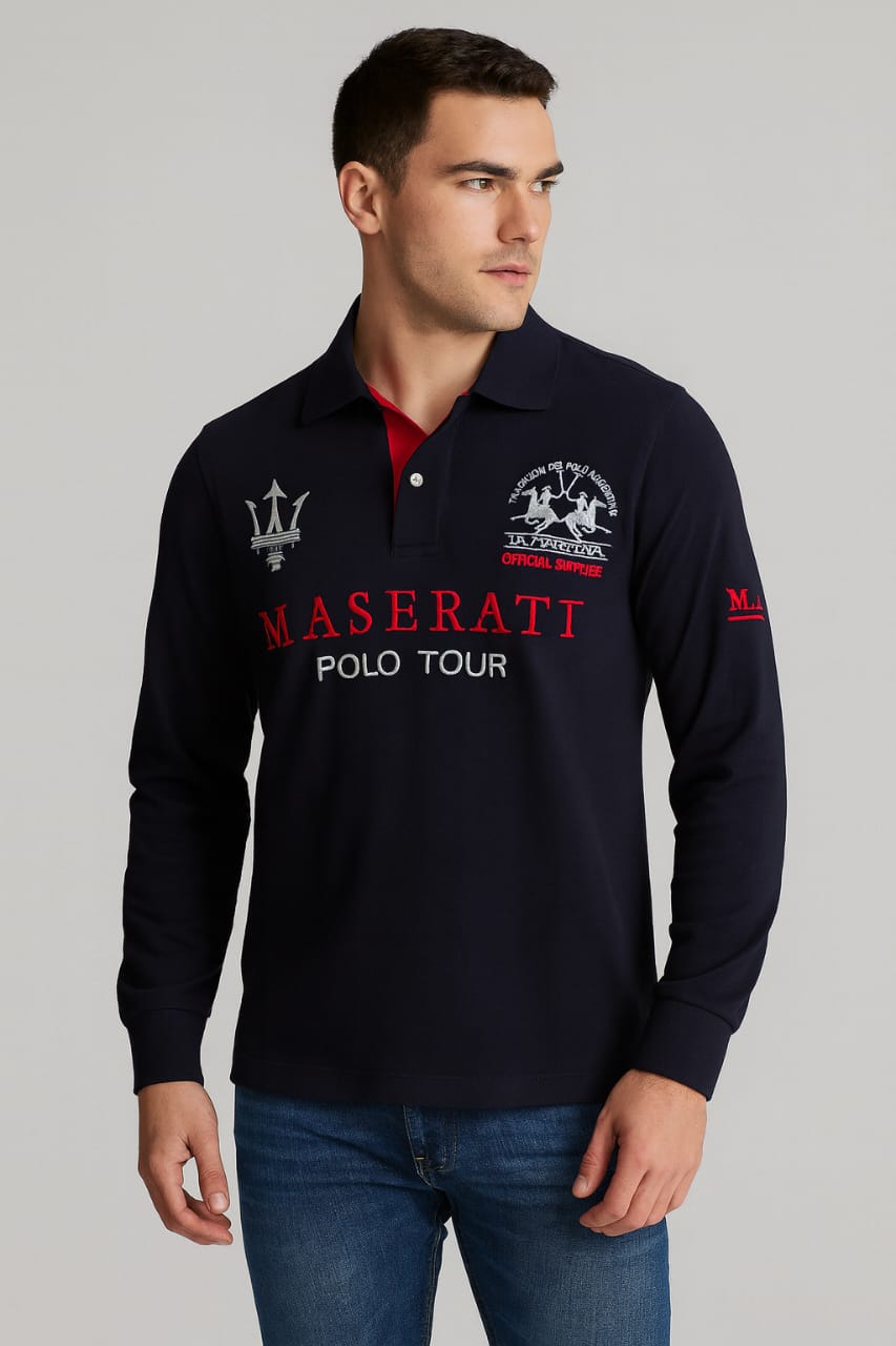 A high-quality long-sleeve polo featuring premium embroidery inspired by luxury sports themes. Stylish, durable, and perfect for everyday wear.