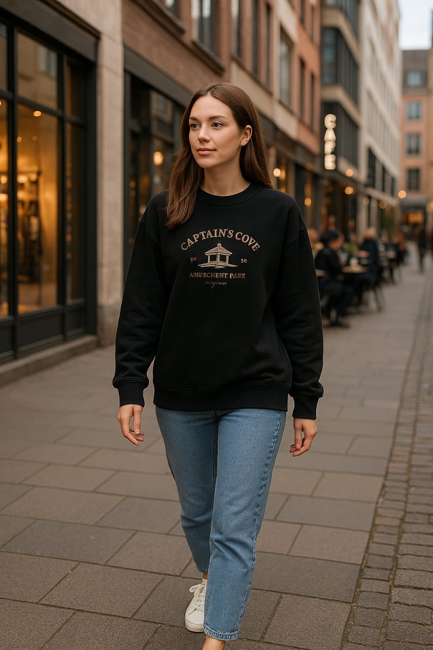 This premium sweatshirt is crafted from high-quality heavy fleece fabric, offering exceptional softness, warmth, and durability for Lebanon’s cooler seasons. The chic black color paired with the vintage “Captain’s Cove – Amusement Park” graphic adds a stylish and timeless touch, making it perfect for everyday wear.