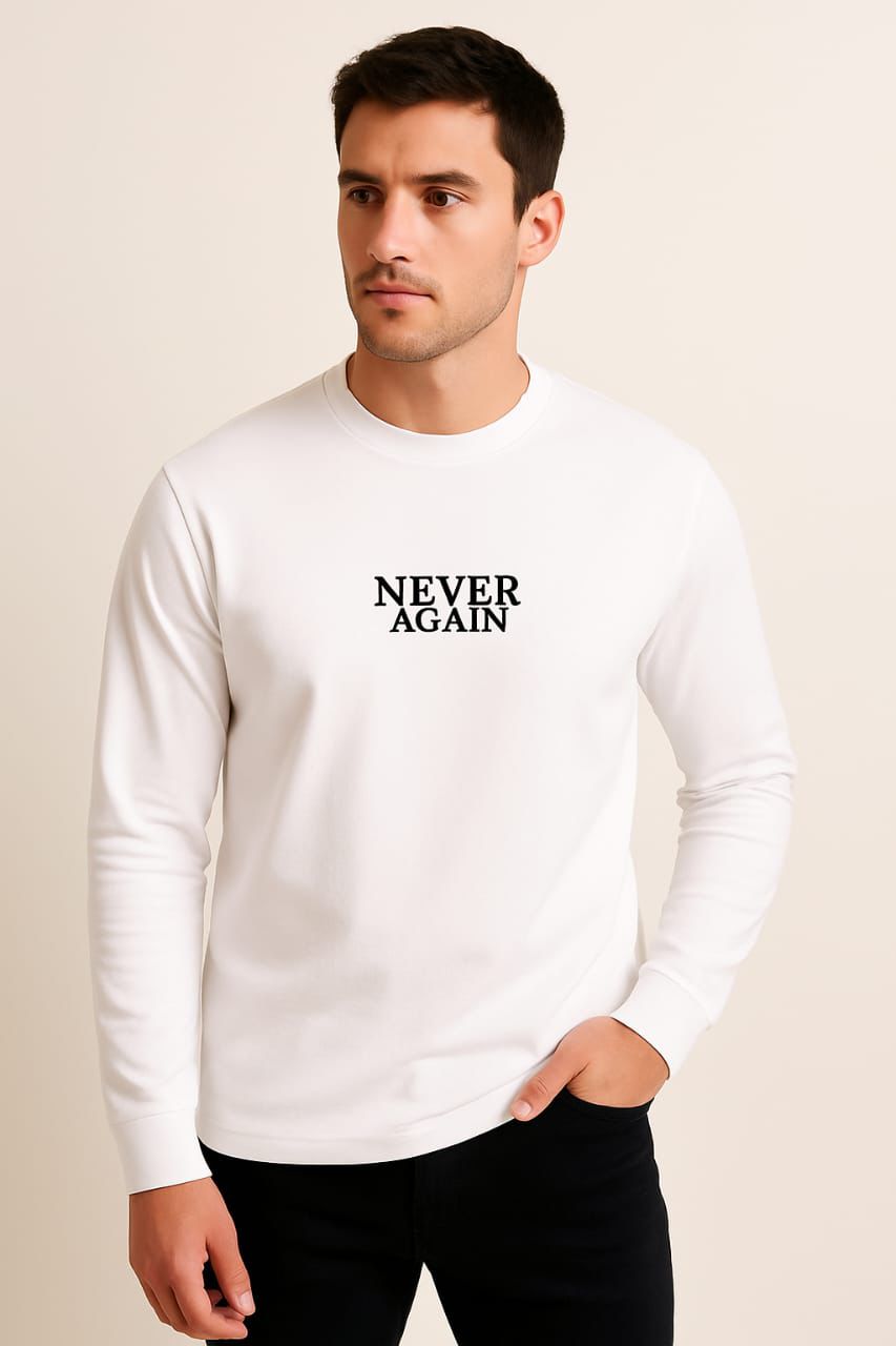 Stylish men’s long sleeve T-shirt made from premium Turkish French terry fabric. Features a leather-style text design on the chest. Available in sizes M to 3XL (big sizes included).