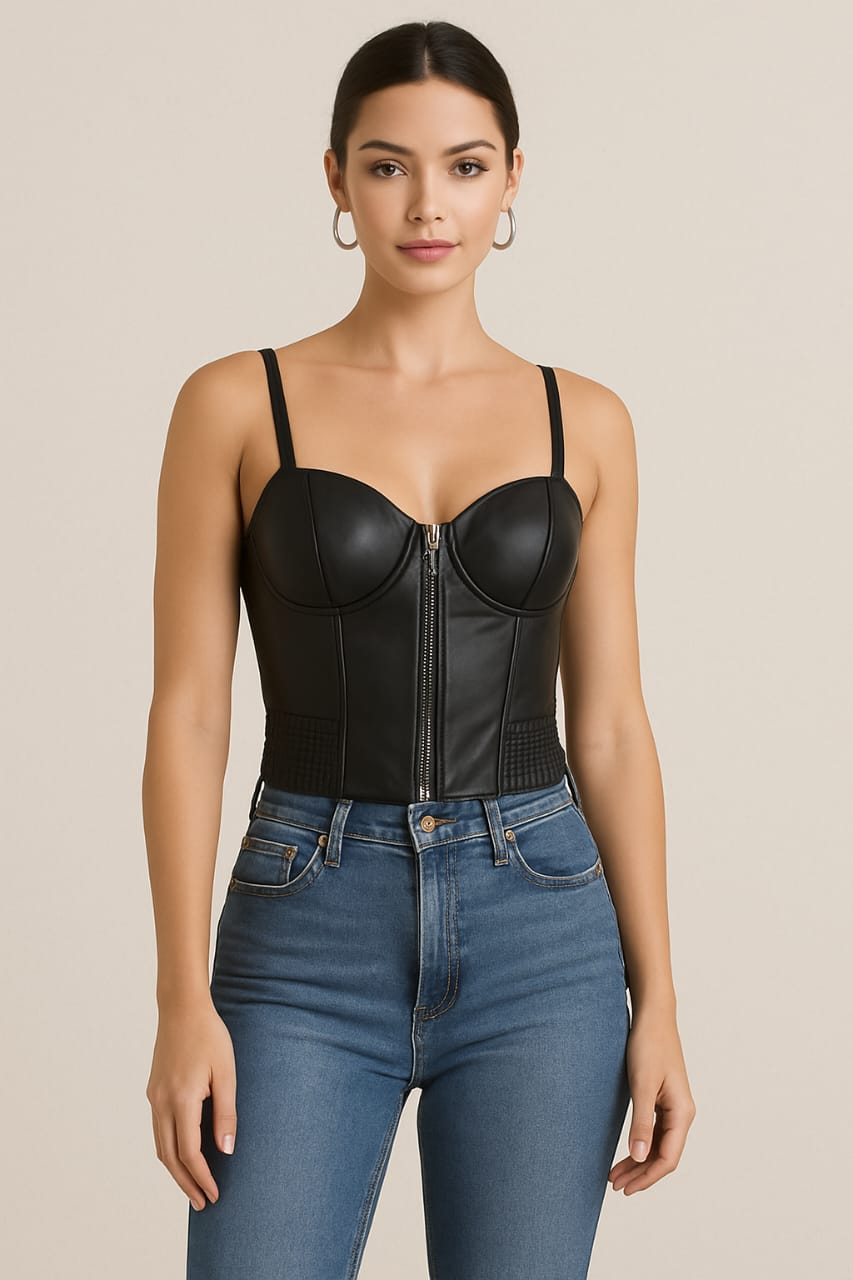 A bold, stylish, premium-quality leather corset top. Turkish-made with a perfect sculpted fit and front-zip design.